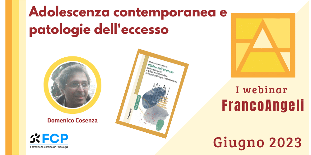 In questo incontro webinar, partendo dal libro “Clinica dell’eccesso“, edito da FrancoAngeli, offriremo una lettura della psicopatologia contemporanea incentrata sulla dimensione dell’eccesso. Partiremo dalla diagnosi formulata da Lacan agli inizi degli anni ’70 del capitalismo contemporaneo, come dimensione nella quale si assiste ad un’elevazione al cardine del legame sociale della dimensione dell’oggetto di godimento e ad una degradazione progressiva della funzione simbolica.