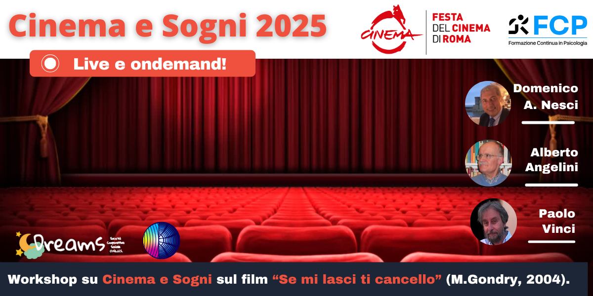 Il Prof. D.A. Nesci, inventore del workshop cinema e sogni introdurrà i Partecipanti alla tecnica con cui si svolge il workshop cinema e sogni e motiverà la scelta del film per questa edizione del 2025. Il Prof. Alberto Angelini, direttore della rivista Eidos di Psicoanalisi e Cinema, ed il Prof. Paolo Vinci, filosofo, introdurranno i Partecipanti alla visione del film con uno sguardo che integra linguaggio cinematografico e linguaggio onirico in una prospettiva psicoanalitica. I Partecipanti sono invitati a vedere il film autonomamente subito dopo gli interventi dei tre Relatori.