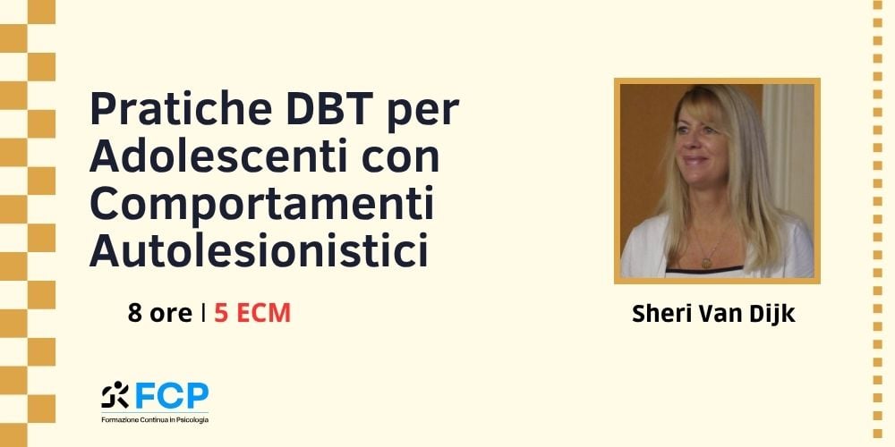 8 ore | 5 ECM | Aiutare i clienti a guarire dall’autolesionismo: un approccio DBT per gli adolescenti. Un corso conl’esperta internazionale Sheri Van Dijk