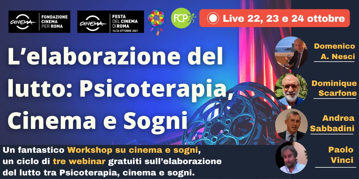 Il tema centrale del workshop “Cinema e Sogni 2021” è l’elaborazione del lutto, un tema quanto mai attuale e cogente come conseguenza della pandemia COVID-19. Durante il ciclo di incontri sarete invitati alla visione serale di un film ed alla condivisione dei sogni notturni durante la mattina seguente. Il modello applicato è quello del Guided Social Dreaming, una variante del classico Social Dreaming di Gordon Lawrence, sviluppato dal Prof. Nesci e da anni applicato in diversi contesti: formativo, educativo, clinico, istituzionale…