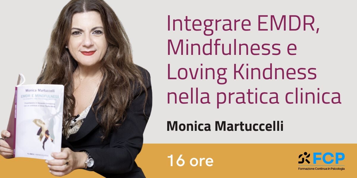 16 ore | In questo corso Monica Martuccelli offrirà ai partecipanti l’opportunità di apprendere come integrare nella pratica clinica l’EMDR, la Mindfulness e la Loving Kindness