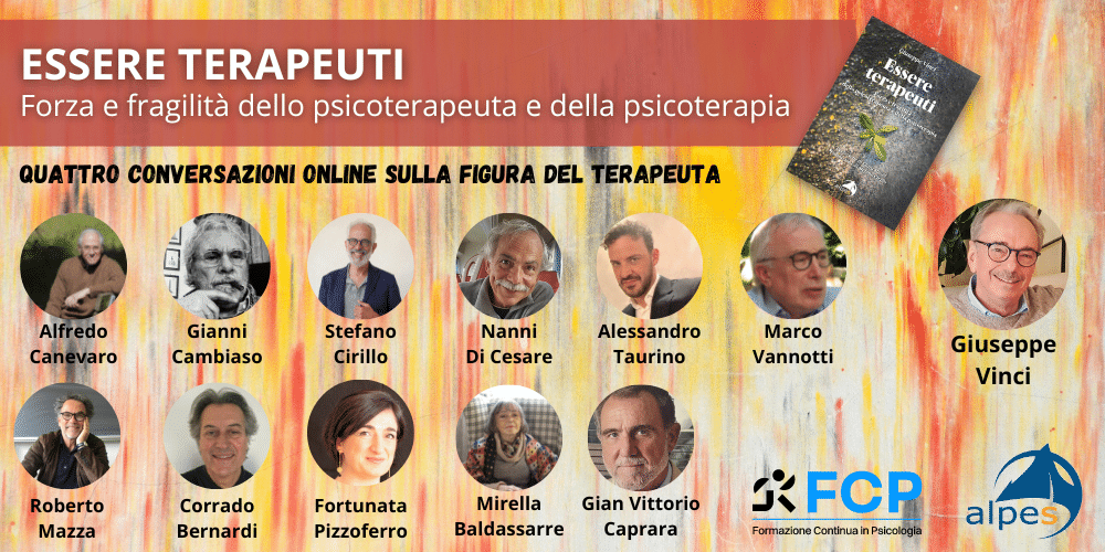 In questo ciclo di webinar, Giuseppe Vinci, a partire dal suo libro Essere Terapeuti, pubblicato da Alpes Italia, proporrà 4 conversazioni con diversi psicologi e psicoterapeuti, con i quali discuterà cosa significhi essere terapeuti.
