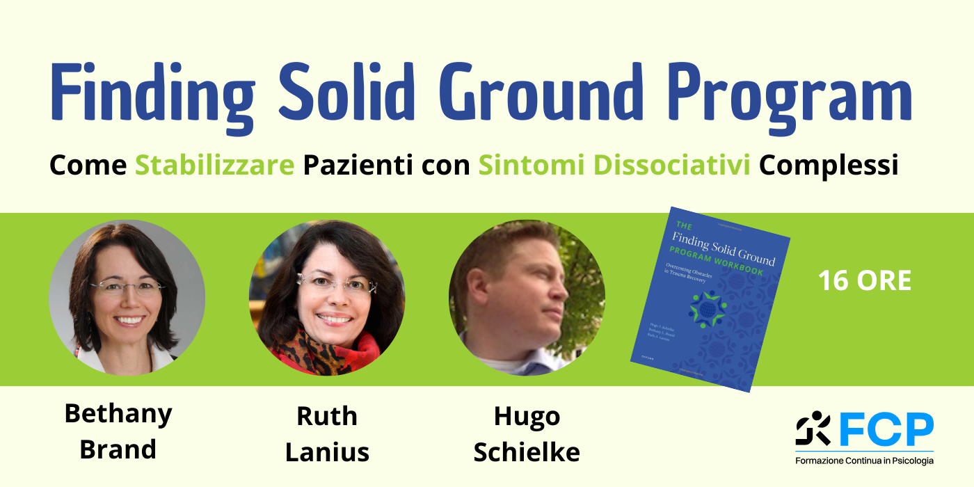 16 ore con Bethany Brand, Ruth Lanius e Hugo Schielke per apprendere – step by step – il protocollo “Finding Solid Ground Program” per la concettualizzazione dii comportamenti a rischio e la stabilizzazione dei pazienti con dissociazione.