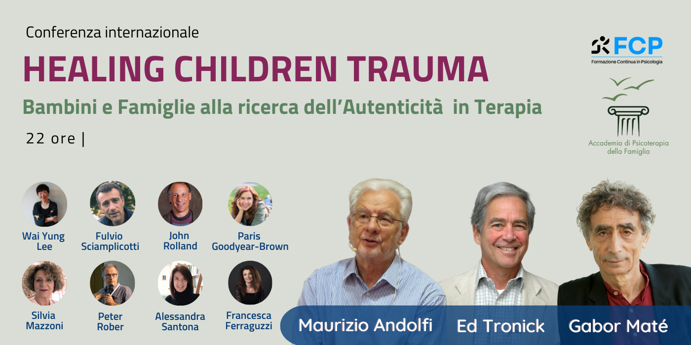 In questa Masterclass diverse caratteristiche rilevanti nell’area del trauma infantile saranno affrontate da esperti riconosciuti a livello mondiale come Gabor Maté, Ed Tronick, Maurizio Andolfi, John Rolland, Paris Goodyear-Brown, Peter Rober e Wai Yung Leee da importanti terapeuti dell’infanzia dell’Accademia di Terapia Familiare di Roma (Silvia Mazzoni, Alessandra Santona, Francesca Ferraguzzi e Fulvio Sciamplicotti).