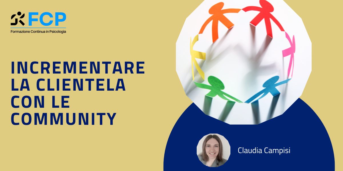 Il modulo formativo Incrementare la clientela con le community è di 2 ore e ha l’obiettivo di guidare il professionista nella creazione di una strategia promozionale e di business all’interno della propria community o in tutte quelle in cui è possibile intercettare il target cliente bersaglio.