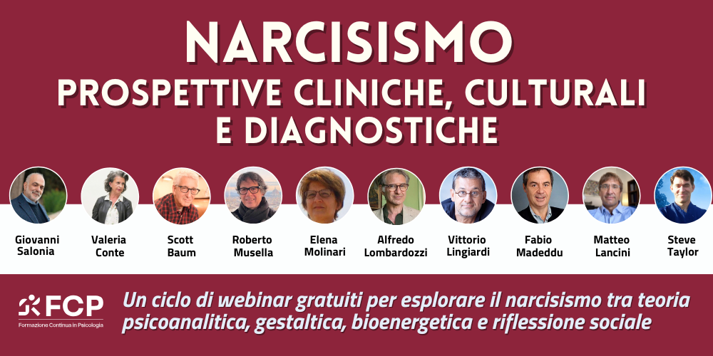 Una raccolta gratuita di webinar per esplorare il narcisismo nelle sue molteplici manifestazioni cliniche, diagnostiche e culturali, tra teoria psicoanalitica, gestaltica, bioenergetica e riflessione sociale