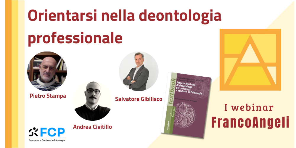 Il webinar presenta, assieme agli autori, il libro “Atlante illustrato di deontologia per psicologi e studenti di Psicologia”, edito da Franco Angeli.