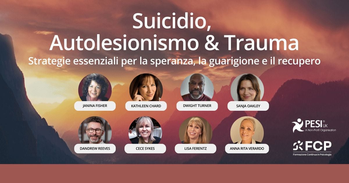 17 ore | Master Class di Alta Formazione sui temi del Suicidio, dell’Autolesionismo e del Trauma, con i maggiori esperti internazionali sul tema, fra cui Janina Fisher, Kathleen Chard, Anna Rita Verardo e altri!